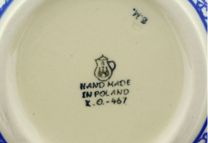 Ceramika Artystyczna Factory. Kiwi Flower, Scalloped Bowl, 8" Diameter x 3.5" Deep, 41.29 oz Capacity. Handmade and Hand Painted in Boleslawiec, Poland. Oven Safe to 480 degrees, microwave, dishwasher, freezer safe. No lead nor cadmium. Naturally Nonstick.