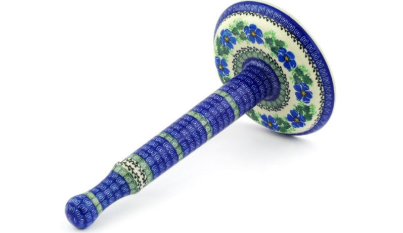 Ceramika Artystyczna Factory. Scarlet Pimpernel Flower, Paper Towel Stand, 7" Diameter x 13" Tall. Handmade and Hand Painted in Boleslawiec, Poland. Oven Safe to 480 degrees, microwave, dishwasher, freezer safe. No lead nor cadmium. Naturally Nonstick.