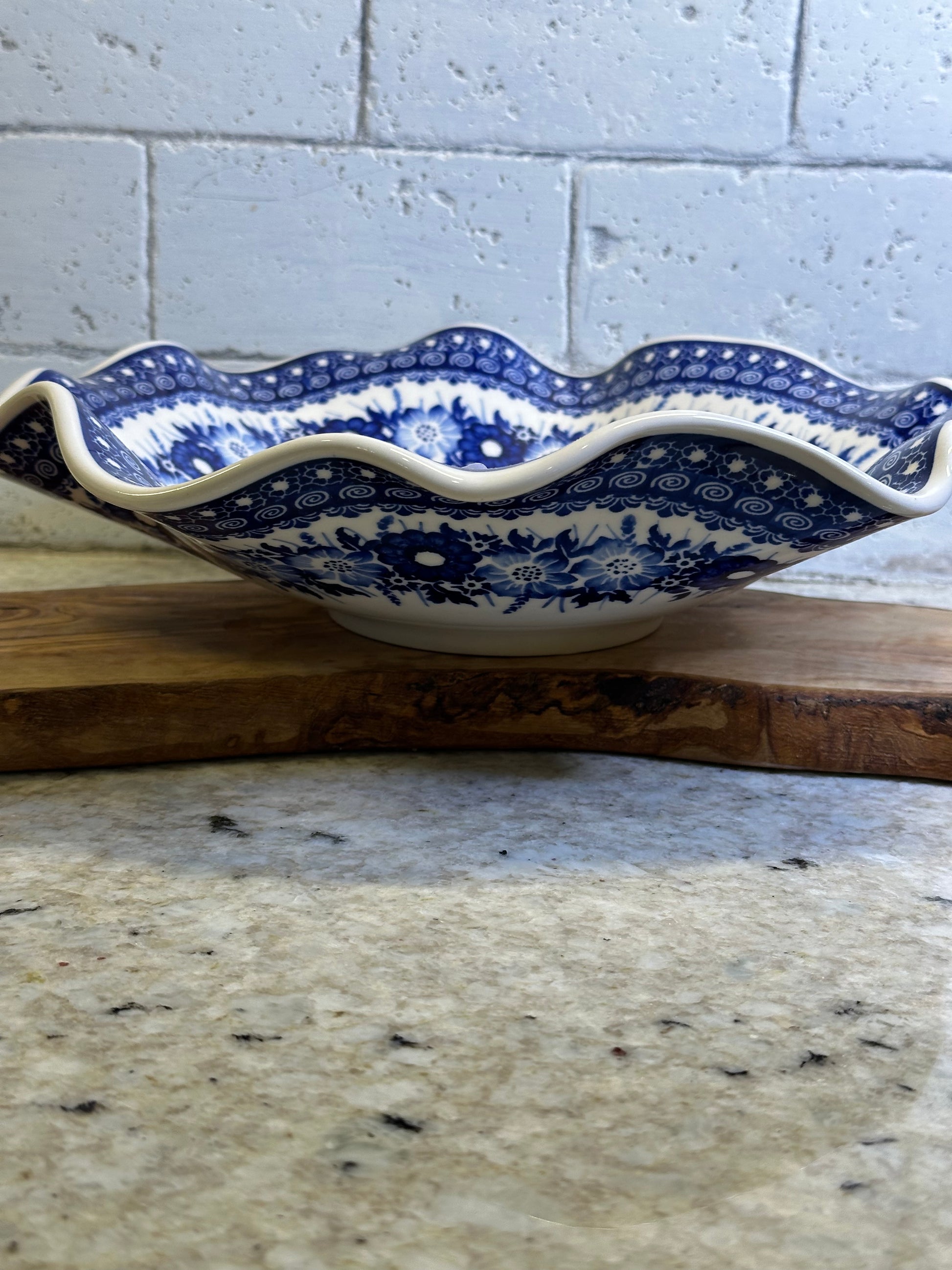 Kaola Polish Pottery, Signature Unikat, Cobalt Meadow, 11" Wavy Shallow Bowl