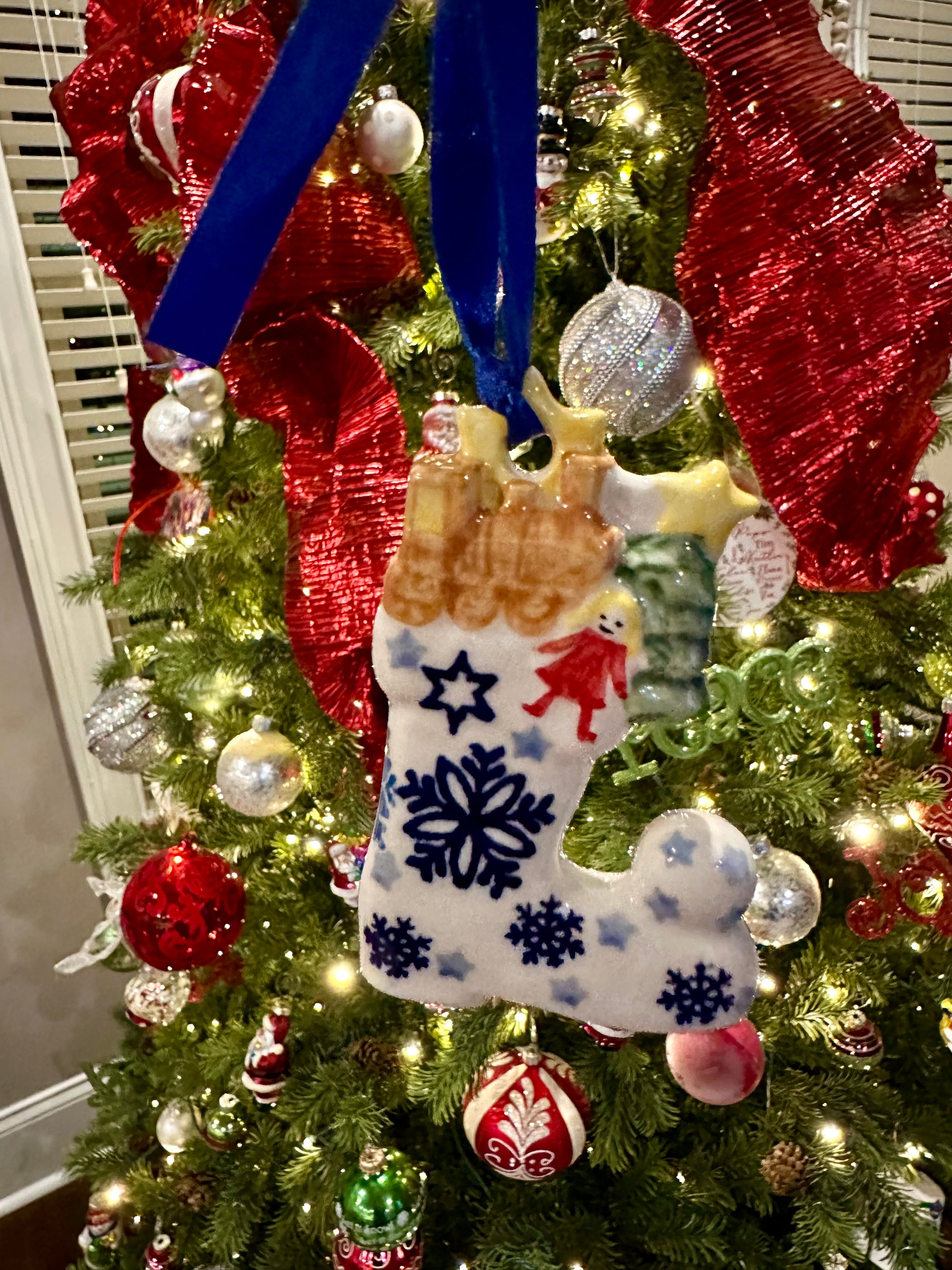 Manufaktura Factory. Frosted Flakes Stocking Ornament. 2.1" x 1.5"