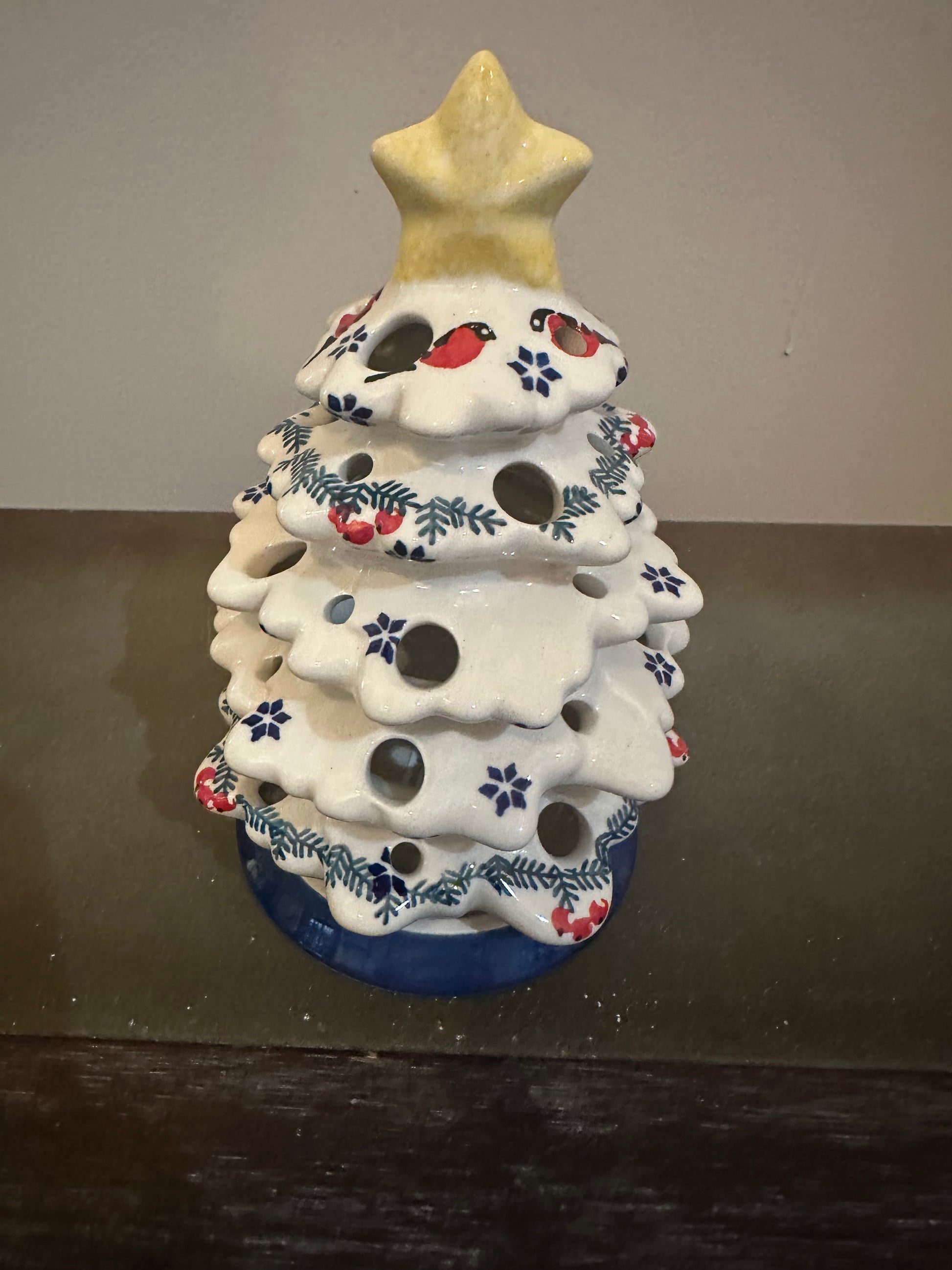 Manufaktura Factory. Gile Carolers, Christmas Tree. 4.75" x 7.5" Tall. Handmade and Hand Painted in Boleslawiec, Poland. Oven Safe to 480 degrees, microwave, dishwasher, freezer safe. No lead nor cadmium. Naturally Nonstick.