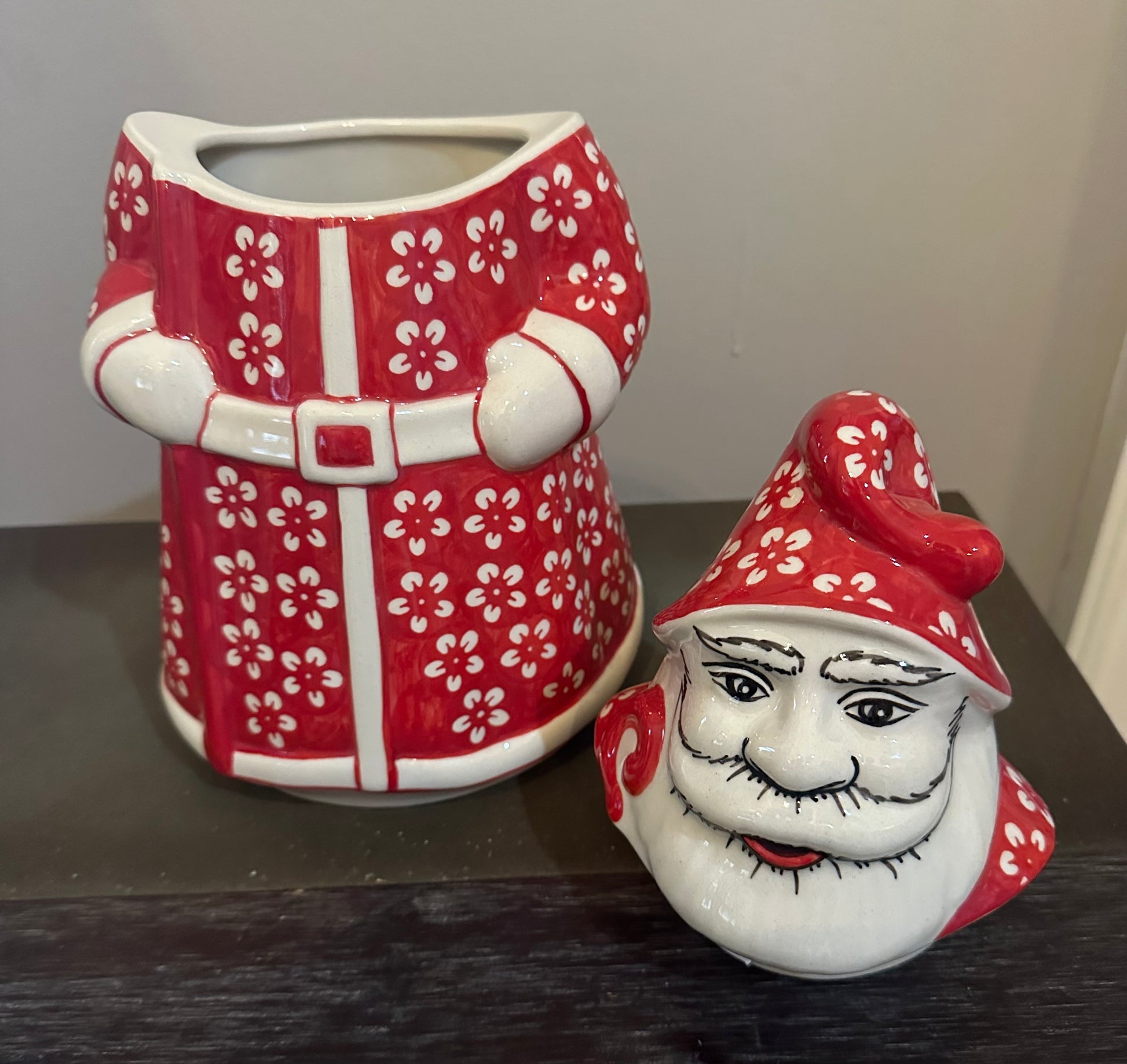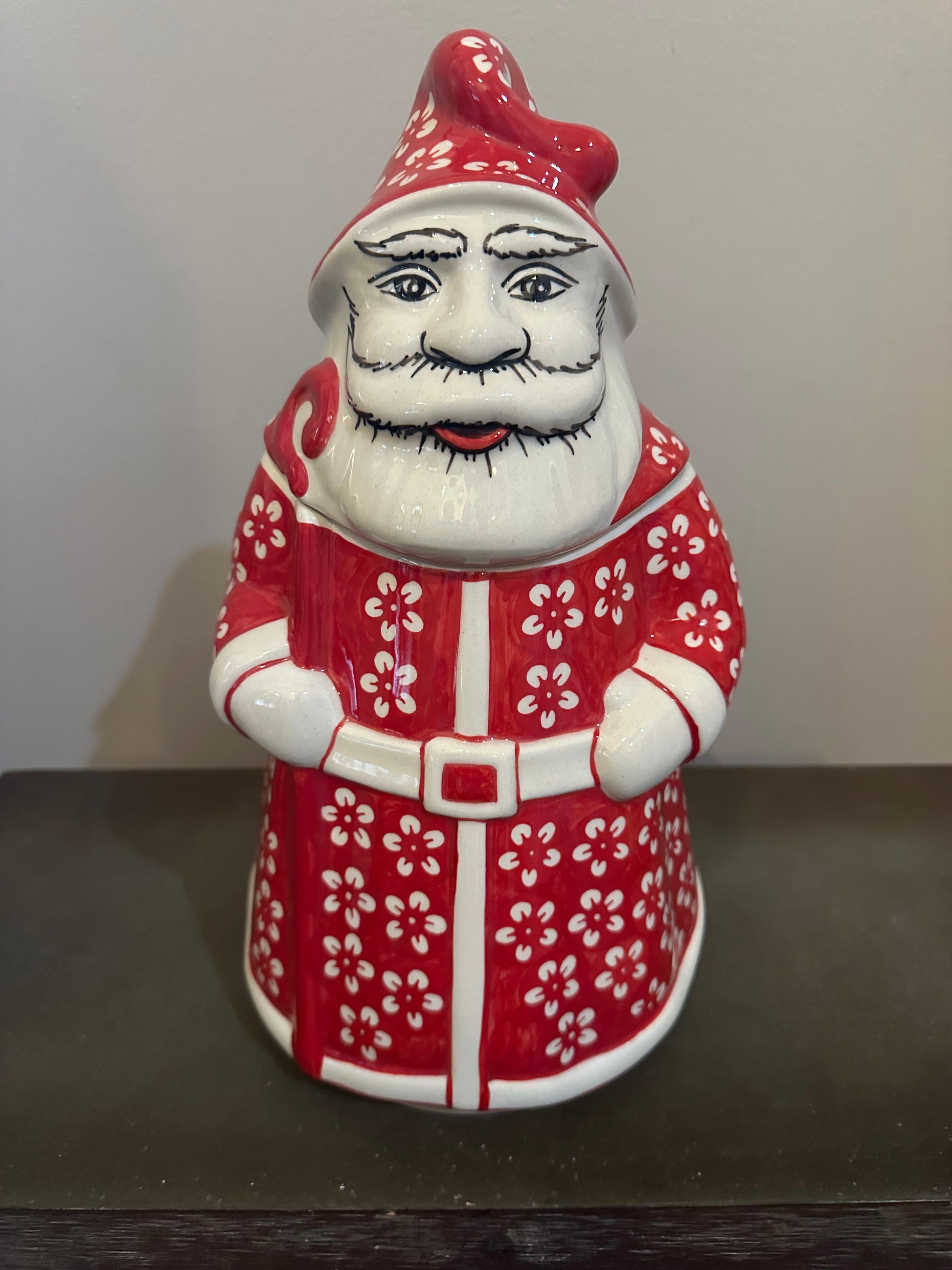 Manufaktura Factory. Red Blossom, Santa Box. 7" x 12". Handmade and Hand Painted in Boleslawiec, Poland. Oven Safe to 480 degrees, microwave, dishwasher, freezer safe. No lead nor cadmium. Naturally Nonstick.