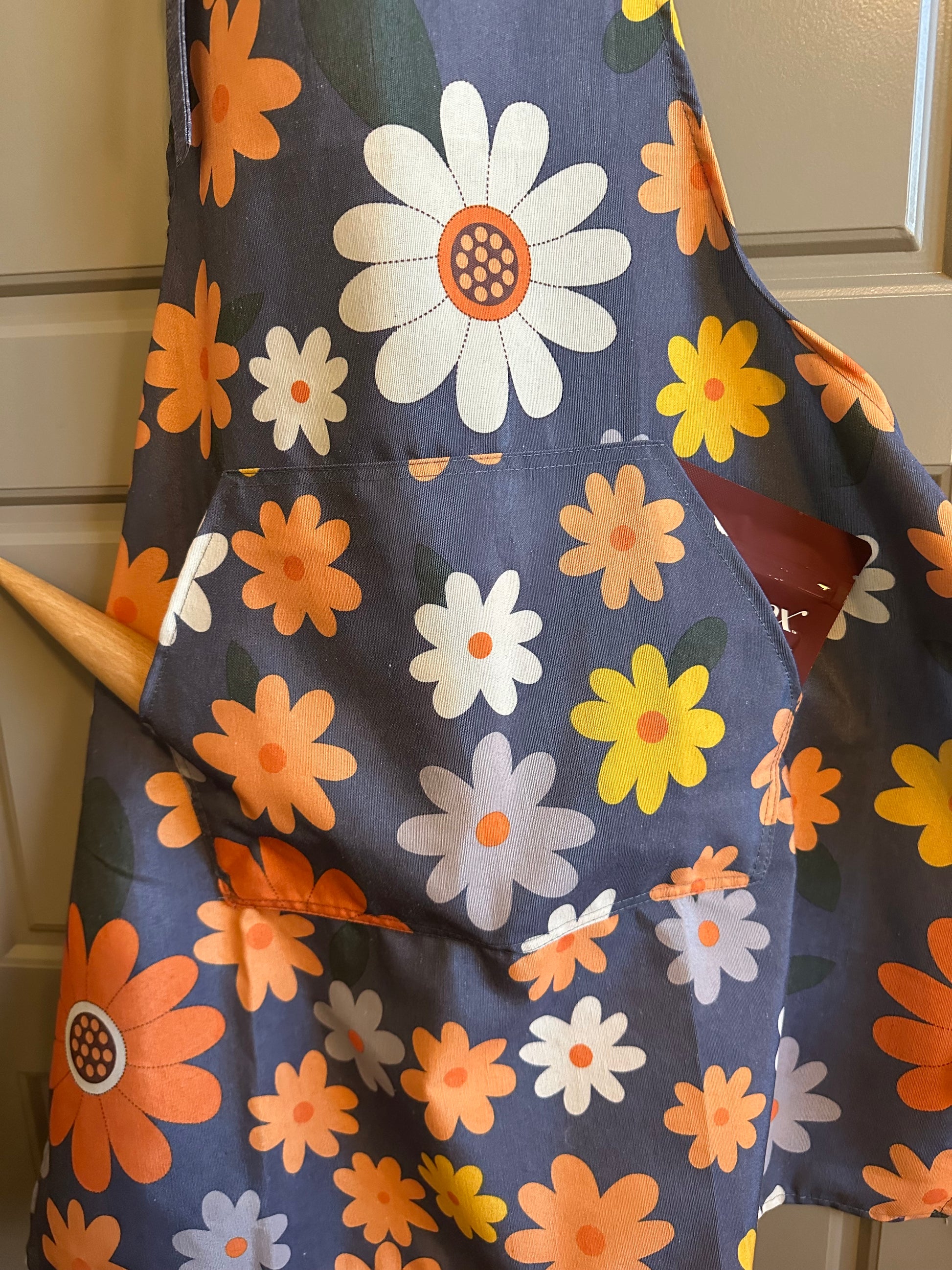 Oil-proof, Waterproof, Multicolor Flower Apron, Gray, Pink, Orange. Pocket in the front. 28" x 26.5".