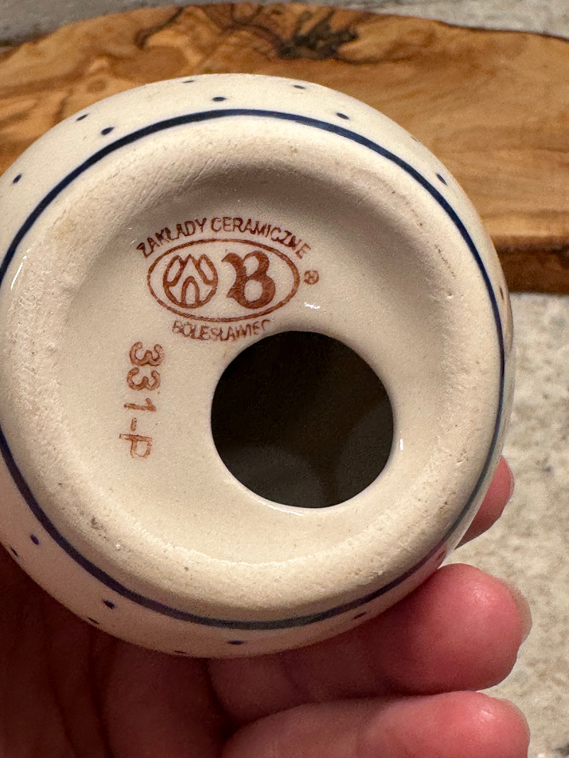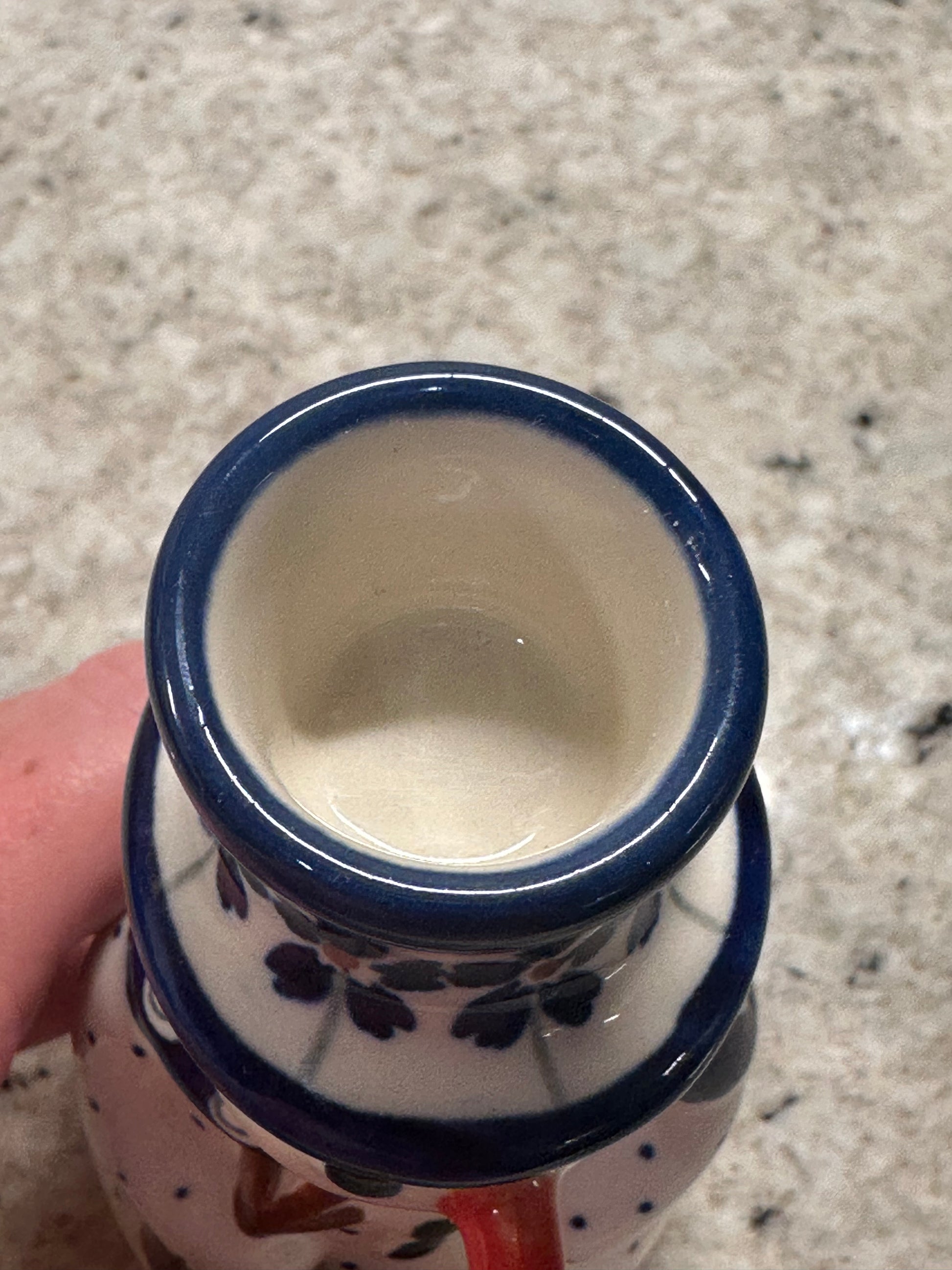 Zaklady Factory. Flowering Peacock, Snowman Candle Holder Figurine. 3" Diameter x 6.5" Tall. Handmade and Hand Painted in Boleslawiec, Poland. Oven Safe to 480 degrees, microwave, dishwasher, freezer safe. No lead nor cadmium. Naturally Nonstick.